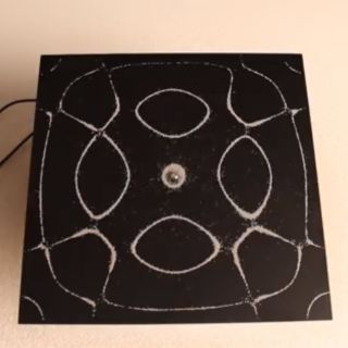 Pero no hay truco, se trata de un fenómeno acústico en el que la propagación del sonido en un medio limitado -en este caso una placa metálica cuadrada- a determinadas frecuencias hace que los granos de sal se concentren en las líneas de intersección de las ondas. En el experimento conectan un generador de frecuencias a un motor que vibra en función del tono y transmite esa vibración a un tornillo situado en el centro de la placa.