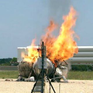 Equipos de bomberos se acercaron a apagar las llamas que produjo la caída de este vehículo -diseñado para despegue y aterrizaje vertical-, de poco más una tonelada y tres metros de diámetro, compuesto de cuatro tanques de combustible de plata esféricos.