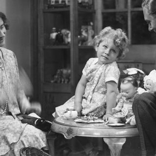 Hay una fotografía en sepia de la boda de la reina Victoria y el príncipe Alberto en la que salen con las manos entrelazadas, viéndose el uno al otro en un dulce momento de 1840. Otra fotografía en blanco y negro muestra a los padres de Isabel, el rey Jorge VI y la reina madre, mirando encantados a la bebé de cabello rizado que se convertiría en reina.
