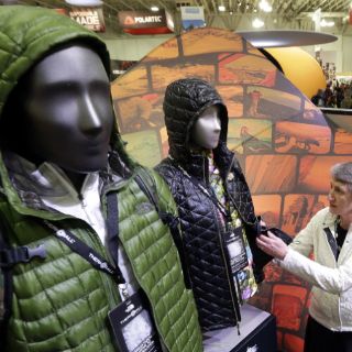 Peter Metcalf, director general de Black Diamond Inc. con sede en Salt Lake City, le presentó a la secretaria del Interior Sally Jewell su línea "suave" y "sensual" de chaquetas y pantalones de telas elásticas cuando se inauguró la Feria Outdoor Retailer Winter Market el miércoles. Cerca de 22.000 personas acudieron a Salt Lake City para la feria que termina el sábado.