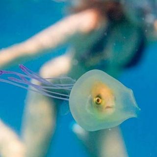 SÍDNEY, AUSTRALIA (09/JUN/2016).- La imagen de un pequeño pez dorado atrapado dentro de una medusa transparente en los mares de Australia se ha convertido en viral después de que un fotógrafo submarino la publicara en una red social.