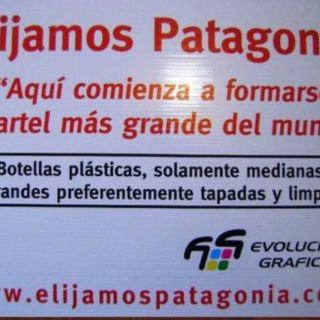 Con la leyenda, "ElijamosPatagonia.com" el cartel, que será captado por Google Earth, mide unos tres kilómetros de largo por unos cien metros de alto y sus letras han sido "dibujadas" con unas 125 mil botellas de plástico, promoviendo el reciclaje, y cenizas del volcán, que entró en erupción en junio del año pasado.
