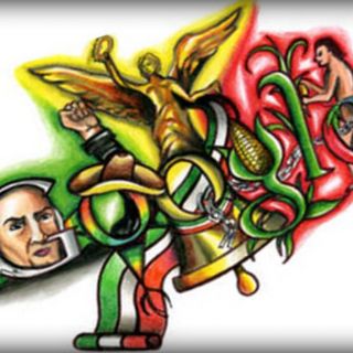 El logo ganador, en este caso, “La belleza de ser mexicano”, presenta a Miguel Hidalgo del lado izquierdo, en el centro la figura del Ángel de la Independencia y al final un personaje del México prehispánico.