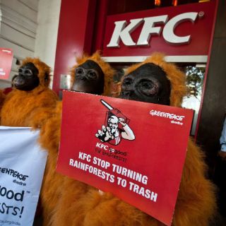 Greenpeace acusó a KFC de convertir la selva en basura e instó a sus consumidores a la "revuelta" para frenar la deforestación.