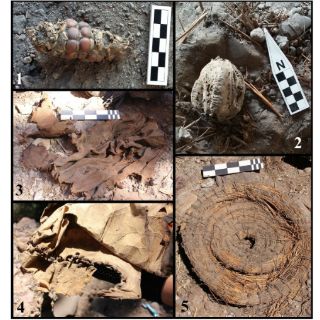 En el lugar identificaron dos cráneos de adulto, varios huesos largos, una cesta, una base para olla de cestería, un textil, que pudo ser parte de la envoltura de los fardos, los materiales de cestería, cordel de algodón y pelo humano, una posible bolsa o taparrabo de piel de venado, un caracol y la cabeza momificada de manera natural de una guacamaya bandera, de la que desafortunadamente los pobladores solo recogieron su cabeza, a pesar de haberla encontrado completa, dejaron los huesos.