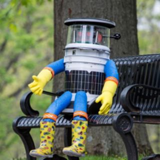 HitchBOT era del tamaño de un niño de seis años y contaba con un cuerpo hecho con un cubo, paneles solares para recargar sus baterías y extremidades hechas con cilindros de espuma como los que los niños utilizan en las piscinas para flotar.