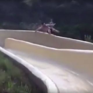 El momento del accidente fue grabado en video y compartido en redes sociales. En él se observa cómo el hombre toma el tobogán y al pasar por la segunda de sus curvas, la más pronunciada, no consigue permanecer dentro del canal y sale por un costado a alta velocidad, perdiendo el control, y en caída libre.