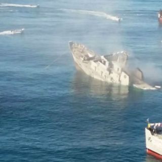 PLAYAS DE ROSARITO, BAJA CALIFORNIA (21/NOV/2015).- El buque Uribe 121, de la Armada de México, fue hundido esta tarde para crear el primer arrecife artificial en Baja California.