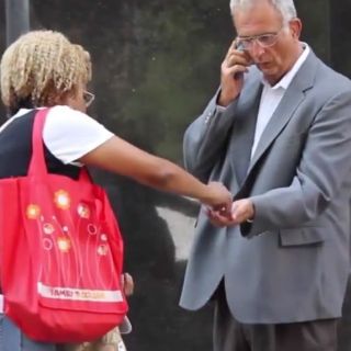 El experimento inicia, y el vagabundo Shook, ya con traje y fingiendo hablar por teléfono, comienza a pedir dinero argumentando que le hace falta un poco de dinero para alcanzar a comprar su café y su sándwich. Las personas reaccionan de forma amable y acceden a darle dinero, incluso un vagabundo busca desesperadamente en sus bolsillos dinero para dárselo. Acto seguido el joven Joseph lo intercepta y una vez que le reconoce su acción le da algo de dinero.