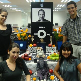 GUADALAJARA, JALISCO (02/NOV/2011).- No hay duda, el ingenio de los mexicanos no tiene límites. Un grupo de jóvenes trabajadores de una empresa de software de la capital tapatía echaron mano de las tradiciones mexicanas y recordaron a Steve Jobs, el desaparecido CEO de Apple, en un altar de muerto muy mexicano pero con el estilo de la empresa de la manzana.