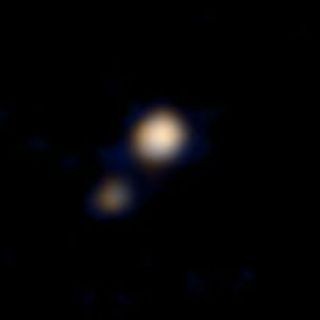 NASA) publicó hoy la primera imagen en color de Plutón y su luna más grande, Caronte, obtenida por la sonda "New Horizons", que debería llegar al