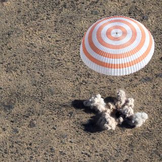 El módulo de descenso de la nave rusa Soyuz TMA-21 tocó tierra hoy con éxito en las estepas de Kazajistán