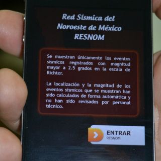 CIUDAD DE MÉXICO (207ENE/2013).- Gracias a un trabajo de colaboración entre la Red Sismológica del Noroeste de México (Resnom), que opera en el Centro de Investigación Científica y de Educación Superior de Ensenada, Baja California, el cicese, la Dirección de Telemática de ese mismo centro investigación y la empresa Happy Discover, radicada en Ensenada, se liberó en la tienda de Apple en Internet una aplicación gratuita que pone en las manos de los usuarios de iPhone, o iPad la información de la actividad sísmica —hora, magnitud, ubicación y mapa de localización— que registra Resnom en tiempo real en esta zona del país.