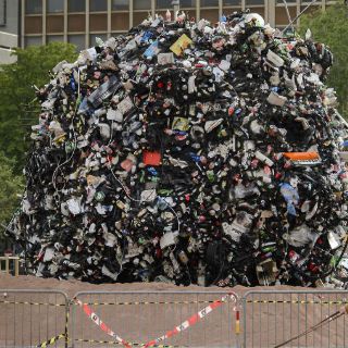 Bautizada como "meteorito de basura", la bola gigante de desechos tiene entre sus numerosas "piezas" objetos tan inesperados como pequeños electrodomésticos abandonados en la vía pública o una bicicleta que el servicio de limpieza encontró en el lago de la ciudad.