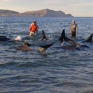 De entre los 27 ejemplares solamente se logró rescatar con vida a dos ballenas piloto adultas y una cría.