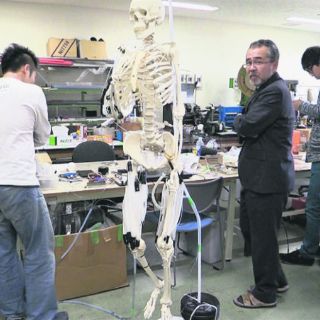 Entre cables, ordenadores, herramientas y aparatos difíciles de identificar destaca un esqueleto humano. Los huesos de una de sus piernas están cubiertos de lo que parecen manojos de cuerdas blancas, conectados a su vez a tubos transparentes. Se trata de “músculos de fibra artificial”, compuestos por tubos de caucho y poliéster entrelazados que se expanden o contraen al aplicarles aire a alta presión, “exactamente igual que sucede con los músculos humanos cuando reciben estímulos nerviosos”, explica Suzumori, quien también ha trabajado para Toshiba.