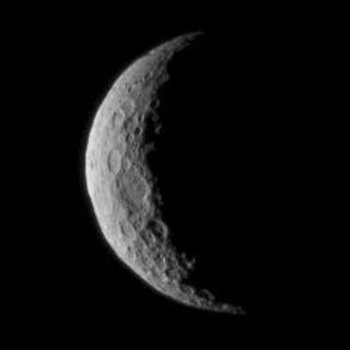 La imagen muestra a Ceres como una media luna debido a la trayectoria de la nave.