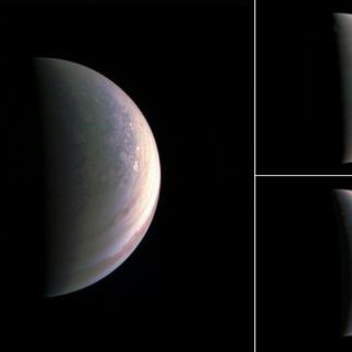 Asimismo resaltó que "no hay ninguna señal de las bandas latitudinales o cinturones que estamos acostumbrados a ver -- esta imagen apenas es reconocible como Júpiter. Estamos viendo señales de que las nubes tienen sombras, lo que indica que se encuentran a una altitud superior a las demás características".