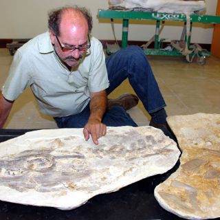 "Hemos podido estudiar en detalle el mosasaurio ('Platecarpus Tympaniticus'), porque el fósil que tenemos en el museo es el mejor preservado del mundo y por eso nos dice mucho de su biología, porque tiene restos de la piel, tráquea, bronquios, la posición del corazón, el riñón y hasta peces de su última cena", detalló Chiappe.