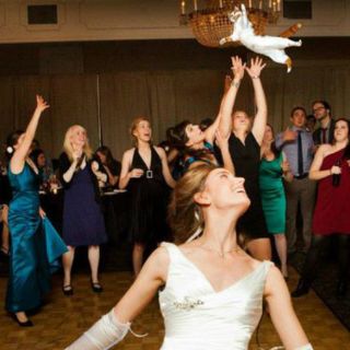 Esta es la tónica del microblog Brides Throwing Cats, en donde se hace una recopilación de decenas de novias en ese momento en donde las invitadas a su boda miran expectante el ramo de flores que ella les lanza. sin embargo, hay algo que no encaja en estas imágenes. Son gatos los que vuelan por los aires hacia las manos de las ansiosas chicas.