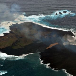 Un avión de los guardacostas ha confirmado que la pequeña ínsula surgida en el océano Pacífico ha seguido creciendo hasta tener una extensión de unas 15 hectáreas y quedar prácticamente pegada a la deshabitada isla volcánica de Nishinoshima.