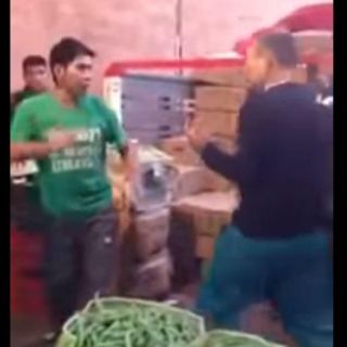 “Ya vete, entiende ya vete”, dice el comerciante mientras golpea al joven que insiste en continuar la pelea.
