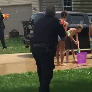 Estados Unidos, sostuvo un fuerte enfrentamiento contra un grupo de niños con pistolas, pero de agua, lo que desató una jornada de diversión.