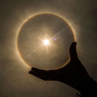 Se produce cuando la luz que emite el Sol se refracta sobre los cristales de hielo que se encuentran en suspensión en la atmósfera y se asocia a la presencia de nubes de tipo cirrostratos.