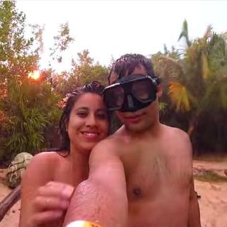 GUADALAJARA, JALISCO (28/JUL/2014).- ¡Vaya susto! Una pareja de vacacionistas disfrutaba en la laguna de Yal-Ku, en Quintana Roo, cuando un rayo cayó justo detrás de ellos; en ese momento, los viajeros se disponían a tomarse una ''selfie'', así que