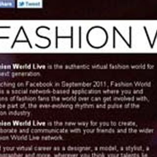 Fashion World Live es el primer universo virtual dedicado a la moda que permitirá a los usuarios de Facebook a partir de septiembre de 2011 "escalar" niveles en el sector mejorando sus habilidades a la hora de diseñar ropa y estilismos, organizar la puesta en escena en la pasarela, maquillar a la modelos y hacer fotografías entre otras actividades.
