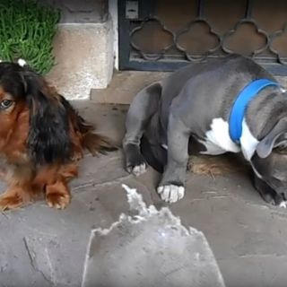 Un pitbulll roba la atención por su reacción ante la reprimenda