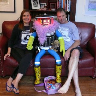 Para celebrar el éxito del viaje, el robot, equipado con botas de goma amarillas, flotadores de piscina por brazos y piernas y diseñado para ser totalmente dependiente de la gente, tenía que estar presente el jueves en Victoria.