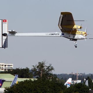 Como consecuencia del mal tiempo desde que se inauguró el Salón de Le Bourget el pasado lunes, el Solar Impulse, un aparato de diseño suizo, no pudo volar hasta este domingo.