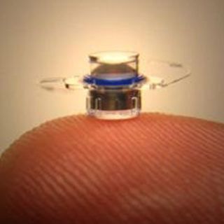 El telescopio en miniatura se inserta en el ojo a través de una operación quirúrgica. Consiste en dos lentes muy potentes que reemplazan al cristalino del ojo para proyectar la luz a una porción sana de la retina y generar una imagen al menos dos veces más grande de lo normal.