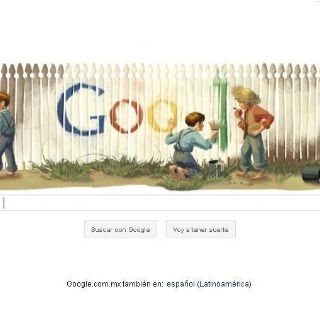 La alusión directa a uno de los primeros y más famosos eventos: el engaño de Tom Sawyer para que la cerca de la anciana Tía Polly quedara pintada, pero no por su esfuerzo, cubre la pantalla de lado a lado en el doodle de hoy y permite el acceso a varias páginas donde se habla de manera más amplia sobre la vida y obra de el humorista norteamericano.