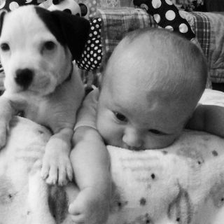 GUADALAJARA, JALISCO (29/JUL/2014).- Con apenas algunas semanas de nacidos, una bebé y su cachorro pitbull han cautivado las redes sociales, pues son inseparables y la madre de la pequeña ha sido la encargada de compartir este lazo en