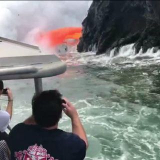 Quienes presenciaron este espectáculo natural lograron capturar en video el momento en que la lava incandescente entraba en contacto con el agua. Esta grabación fue colocada en la página de Facebook de la compañía Lava Ocean Tours, Inc., responsables de realizar la afortunada expedición.