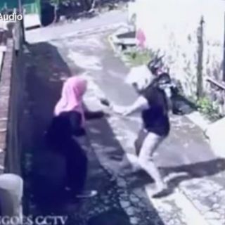 Una cámara de seguridad, en Malasia, captó el momento en el que un delincuente montado en una motocicleta, se acerca a una mujer que va caminando por la calle. El sujeto decide bajarse de su vehículo y arrebatar el bolso a su víctima para después salir corriendo, olvidando su moto en el lugar de los hechos.