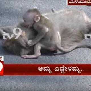 GUADALAJARA, JALISCO (12/MAR/2017).- Un video que muestra a una cría de mono mientras llora abrazado al cadáver de su madre, que fue atropellada en un accidente ocurrido en una ciudad de India, conmueve a miles de usuarios que lo han reproducido en YouTube.