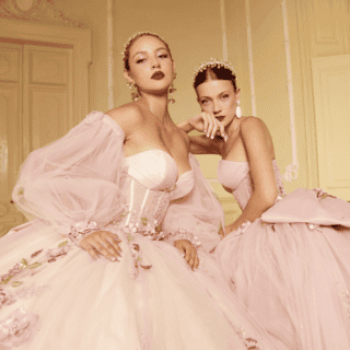 Con sus emblemáticas y voluminosas faldas, la colección está diseñada para quienes desean una entrada impactante y recuerdos fotográficos inolvidables. Los bordados en cristales, trabajados minuciosamente a mano, ofrecen un brillo deslumbrante que realza la belleza de cada vestido.