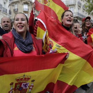 "Apoyamos a los españoles catalanes, a España, y queremos paz y que España quede unida como siempre ha estado", señaló Castaño, un empresario hijo de inmigrantes españoles y nacido en Francia hace 49 años.