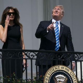 El mandatario estadounidense observó el fenómeno desde la Casa Blanca junto a su esposa Melania y su hijo más joven, quienes sí tomaron en cuenta las medidas de precaución y usaron gafas de sol y no voltearon al cielo.