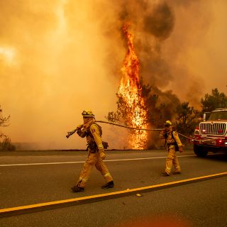 Bomberos combaten un incendio cerca de una autopista en Clearlake Oaks, California. AP/n. Berger