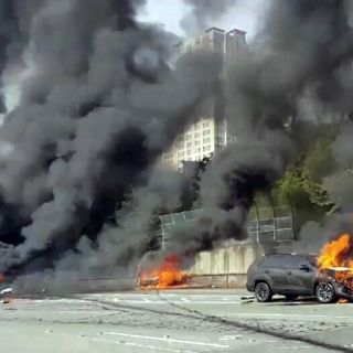 El estallido incendió nueve vehículos, que circulaban en una autopista cerca de Changwon