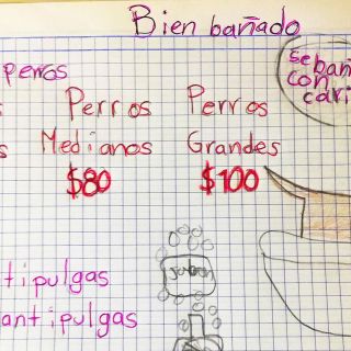 "Se bañan perros con cariño": Niño que quiere ser veterinario inicia su propio negocio