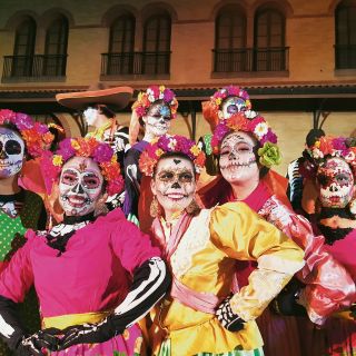El Festival de las Calaveras tuvo mucho más por ofrecer a sus asistentes. En la Plaza de las 3 Centurias, uno de los rincones más bellos de la ciudad, se ofreció el 2 de noviembre el espectáculo “La muerte sobre rieles”, un bello recorrido a través del colorido, la música y las tradiciones mexicanas, donde los actores lucieron un elaborado maquillaje y majestuosos trajes folclóricos.