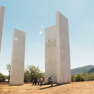 Sobre los miradores, Aldrete platicó: “Funcionan todos como hitos en el paisaje. Hay una torre que no es precisamente un mirador, pero está en uno de los puntos más altos del paisaje: al lado hay una vista bellísima, no es un mirador pero marca el punto. Después está la pieza que está en Los Guayabos, los arcos: es una planicie que se forma dentro de una pendiente. No tiene mucha altura la pieza, pero al subir hay una vista panorámica donde contextualiza lo que hay alrededor”. De la pieza de Aravena, Luis resaltó: “lo que acentúa es el paisaje, se levanta un poco de la tierra y nos pone por encima de los árboles. Marca lo que ya veíamos, pero lo pone dentro de un marco y se maximiza la vista”.