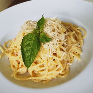¿Recomendaciones? Explora el Spaghetti al pesto o el Penne al pomodoro si lo tuyo son las pastas. Si prefieres el Risotti, no te puedes quedar con las ganas de probar el Risotto al Nero ai Frutti di Mare. En el apartado de las pizzas, vale la pena disfrutar la Del Contadino (mozzarella, pera, nuez, queso, gorgonzola, arúgula y miel de abeja) o la Mezza Luna (mitad pizza, mitad calzone, con salsa de tomate, mozzarella, aceitunas negras y pollo a la parrilla).