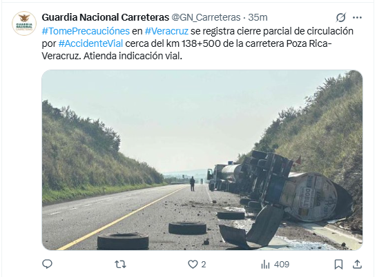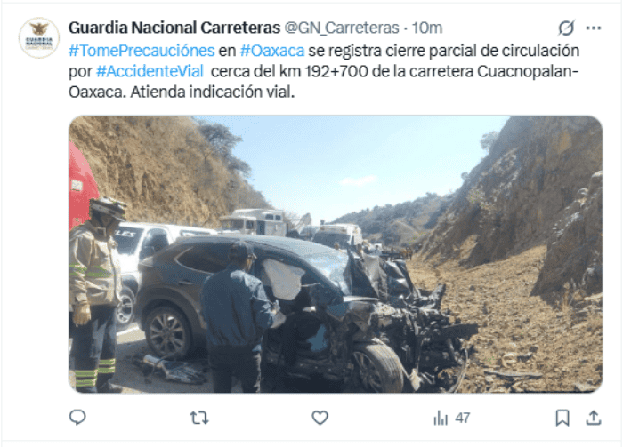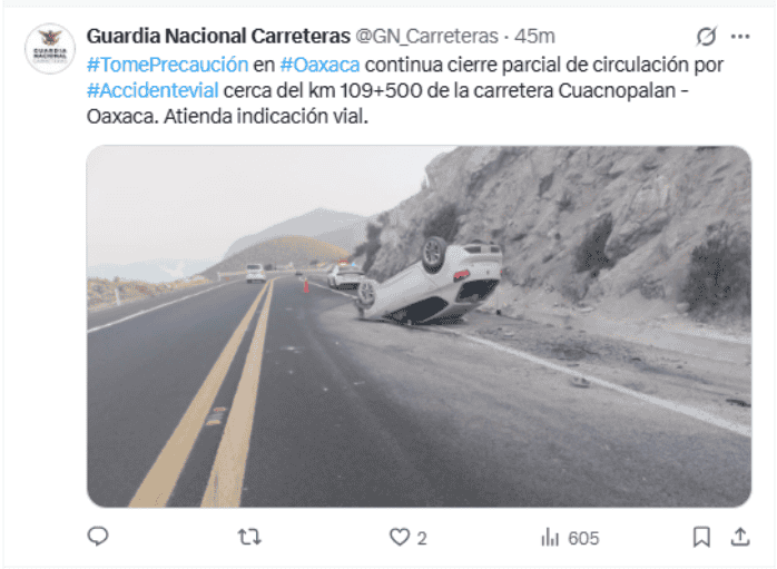 Caminos y Puentes Federales de Ingresos y Servicios Conexos (Capufe) es un organismo público descentralizado del Gobierno de México, perteneciente a la Secretaría de Infraestructura, Comunicaciones y Transportes (SICT), que opera y da mantenimiento a los caminos y puentes federales. En las redes sociales de este organismo, todos los días se da cuenta de los bloqueos parciales y totales de carreteras y caminos del país, mismos que te compartimos esta mañana. Capufe participa en proyectos para la construcción y operación de vías generales de comunicación. El máximo órgano rector del organismo lo constituye un consejo de administración presidido por el titular del SICT, Jesús Antonio Esteva Medina. El Informador continuará atendiendo estos datos en las carreteras y caminos de México. Te invitamos a seguir estas actualizaciones al momento.
