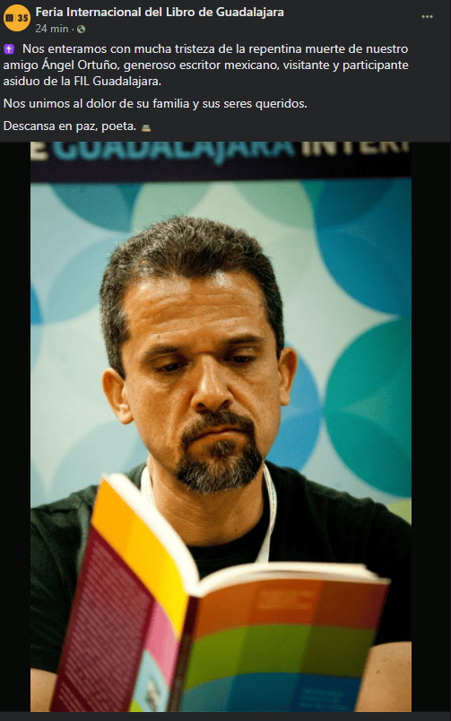 El poeta y bibliotecario Ángel Ortuño falleció este viernes, según informó la Biblioteca Iberoamericana "Octavio Paz" de la Universidad de Guadalajara (UdeG) sin especificar la causa del deceso. Ortuño trabajaba en la biblioteca desde 1997.“La Biblioteca Iberoamericana ´Octavio Paz´expresa sus condolencias por el lamentable fallecimiento de nuestro compañero y amigo, Ángel Manuel Ortuño Sahagún”, escribió en un breve comunicado. “Pronta resignación a sus familiares y amigos. Que en paz descanse”. También, el Centro Universitario de Ciencias Sociales y Humanidades (CUCSH) lamentó la partida del poeta, destacando su participación en la Cátedra Latinoameicana Julio Cortázar del Centro Universitario.Una de las últimas publicaciones de Ángel Ortuño fue hecha la mañana del jueves, donde informó que se había hecho unos estudios y debía descansar.Por su parte, Antonio Ortuño, hermano del poeta, compartió a través de Twitter la canción "El Rey del Rock n´Roll" de Vicentico con el siguiente mensaje: “Se fue el rey irrepetible de toda esta historia”.Además, la Feria Internacional del Libro en Guadalajara (FIL) se despidió "con muha tristeza" de su amigo poeta. " Nos enteramos con mucha tristeza de la repentina muerte de nuestro amigo Ángel Ortuño, generoso escritor mexicano, visitante y participante asiduo de la FIL Guadalajara. Nos unimos al dolor de su familia y sus seres queridos. Descansa en paz, poeta". El escritor jalisciense deja un legado sólido legado de poesía, calificada como irreverente y divertida: "auténtico forajido de la lírica", según el poeta José Homero, o "una de las voces más desenfadadas y arriesgadas de la poesía mexicana", en palabras del narrador Luis Panini.Además de su labor como poeta, Ortuño trabajó buena parte de su vida como bibliotecario en la Biblioteca Iberoamericana Octavio Paz, en la que colaboró de manera cercana con Fernando del Paso (director de la misma) como responsable de los servicios de la biblioteca.***Si te interesó esta noticia y quieres saber más, entonces descarga y descubre INFORMAPlus, la aplicación digital de EL INFORMADOR, en donde tenemos contenidos exclusivos, seleccionados por nuestros editores, para darles una experiencia más completa a los lectores.Descarga la aplicación y pruébala GRATIS por treinta días.Si eres suscriptor de EL INFORMADOR tu acceso está incluido, solicítalo al 33 3678-7777AC